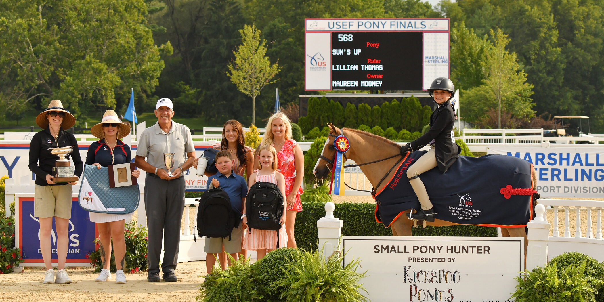 Lexington, KY – August 8, 2024 – The Regular Small Pony Hunters rounded out day three of the 2024 USEF Pony Finals, presented by Marshall and Sterling. The shining sun was nothing compared to the smiles of young pony riders exiting the Rolex Arena on Thursday evening in the Bluegrass State. Kevin Holowack (CAN) set a classic hunter course, allowing pony-and-rider combinations to showcase their skills in the spotlight. Following three division phases, Lillian Thomas and Sun’s Up climbed the rankings in a field of 121 seasoned Small Pony Hunters to secure the Regular Small Pony Hunter National Championship, presented by Kickapoo Ponies. With a win in the over fences phase, it was Carsyn Korotkin and Pepsi who claimed the Reserve Championship honors.